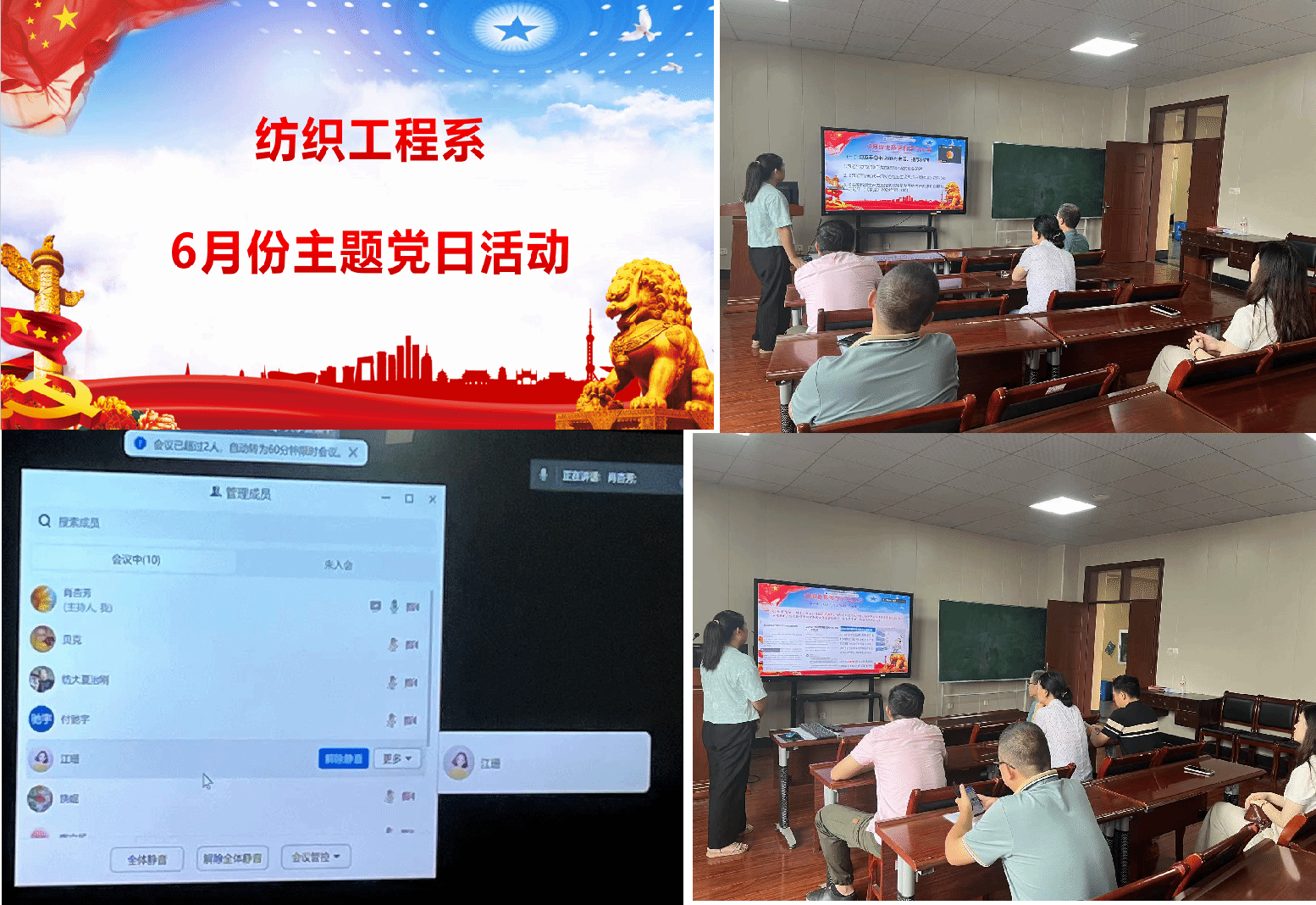 6月27日下午,为凝聚支部党员力量,激励大家坚定理想信念,以实际行动庆祝党的生日,纺织教工党支部开展了“党纪学习暨榜样党员”的微党课活动。微党课上,支部书记肖杏芳介绍了新版《中国共产党纪律处分条例》的“八大亮点”内容,解读了政治纪律、组织纪律、廉洁纪律、群众纪律、工作纪律、生活纪律六大纪律的主要违纪行为,并对照对标党纪条例列出了教师可能违犯党纪的风险点。如教师教育教学不当言论违反政治纪律,考试、考核录取不公正违反工作纪律,...
