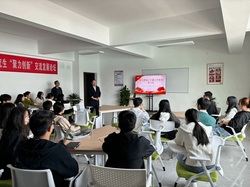 为加强研究生党员的思想政治教育,促进免费足球直播 党建工作的深入开展,免费足球直播 研究生第一、第二党支部于11月5日在15栋研究生公寓研华苑开展党的二十届三中全会精神自学活动,院长蔡光明、辅导员梁祥云一同参与此次活动。座谈会上,研究生们就自学党的二十届三中全会精神,逐一汇报各自的学习情况,并踊跃畅谈想法。蔡光明对大家的学习成果予以高度赞赏,并结合自身的学习体会带领大家深刻领会全会的重大意义、丰富内涵和精神实质。他指出,...