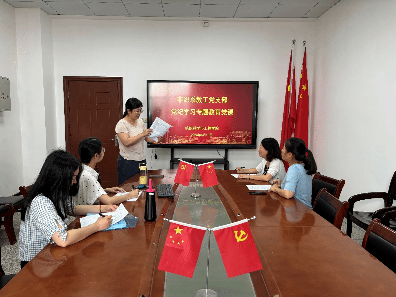 中共中央印发了修订后的《中国共产党纪律处分条例》(以下简称《条例》),并发出通知,要求各地区各部门认真遵照执行。通知指出,党的二十大对全面加强党的纪律建设作出战略部署。党中央着眼解决大党独有难题、健全全面从严治党体系,对《条例》作了修订。为进一步学习《条例》的内容及修订事项,纺院非织系教工党支部书记张明讲了“党纪学习教育”党课。在党课上,张明介绍了《条例》的修订历史,对《条例》的总则、分则及附则进行了讲解与讨论,...