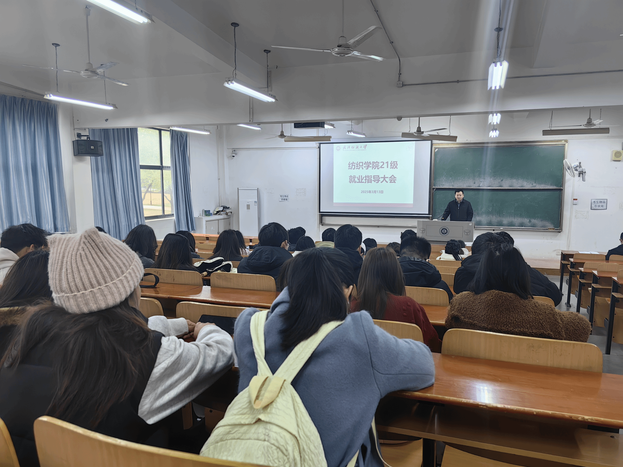 3月13日下午,免费足球直播 于03-120教室召开免费足球直播 2025届毕业生就业指导大会。会议由免费足球直播 学生工作负责人赵亮主持,毕业生辅导员、全体求职毕业生参会。会议以党中央“稳就业”“保就业”决策部署为指导,结合当前就业形势与纺织行业特点,通过政策解读及分类指导,为毕业生冲刺求职关键期提供全方位支持。
