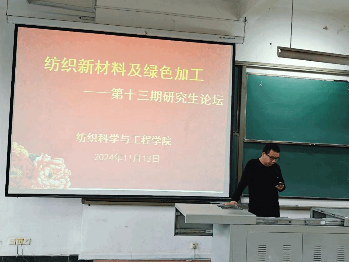 的科研工作,加强师生间的学术交流,提高研究生素质和学术氛围,我院于11月13日下午14:30举办了第十三期“纺织新材料及绿色加工”研究生论坛。