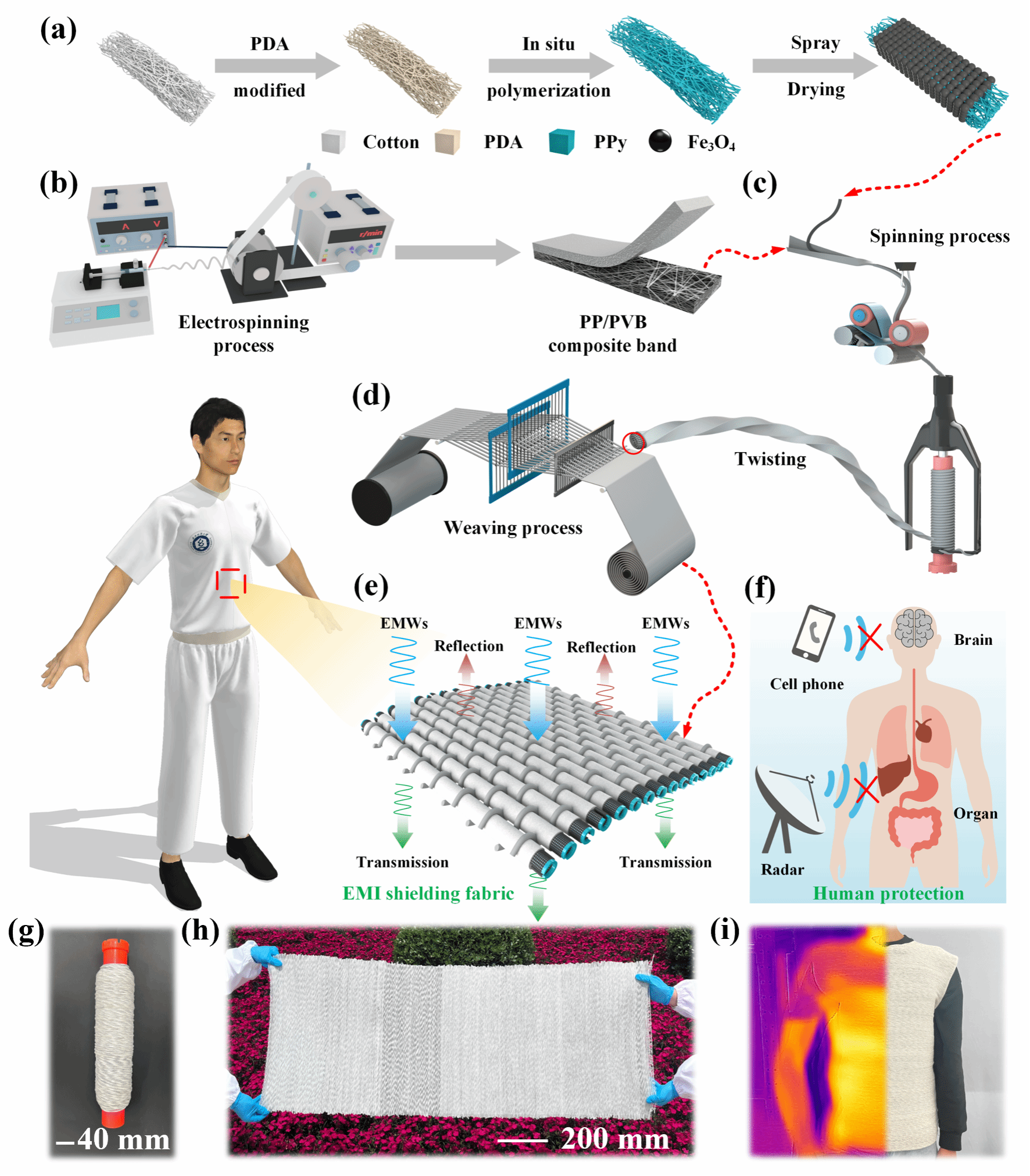 近期,武汉纺织大学纺织新材料与先进加工团队的纺纱新材料与先进加工课题组,在《Advanced Fiber Materials》上发表了题目为“Durable Fe3O4/PPy Particle Flow Spun Textile for Electromagnetic Interference Shielding and Joule Heating”的研究成果(论文链接: //doi.org/10.1007/s42765-024-00498-2),成果论文的第一作者为免费足球直播-足球直播在线观看 研究生刘佳鑫,通讯作者为徐卫林院士(团队负责人)、唐文杨博士(科研骨干)、夏治刚教授(课题组负责人)。