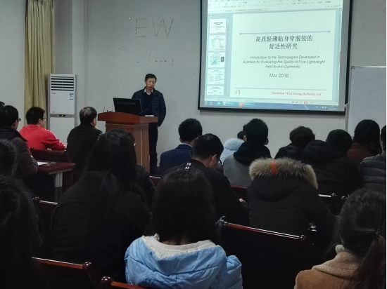邀请了澳大利亚羊毛检测局的王惠民博士给研究生带来了“高质轻薄贴身穿服装的舒适性研究”学术讲座。讲座由免费足球直播
