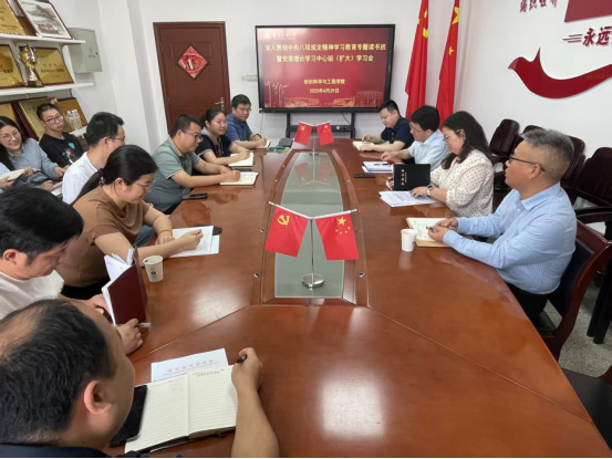 在8H504会议室举办深入贯彻中央八项规定精神学习教育读书班暨党委理论学习中心组学习会(扩大会议)。会议由党委书记朱张军主持,副院长夏治刚作专题分享,全体党委委员、各支部书记及各系室主任参加学习。