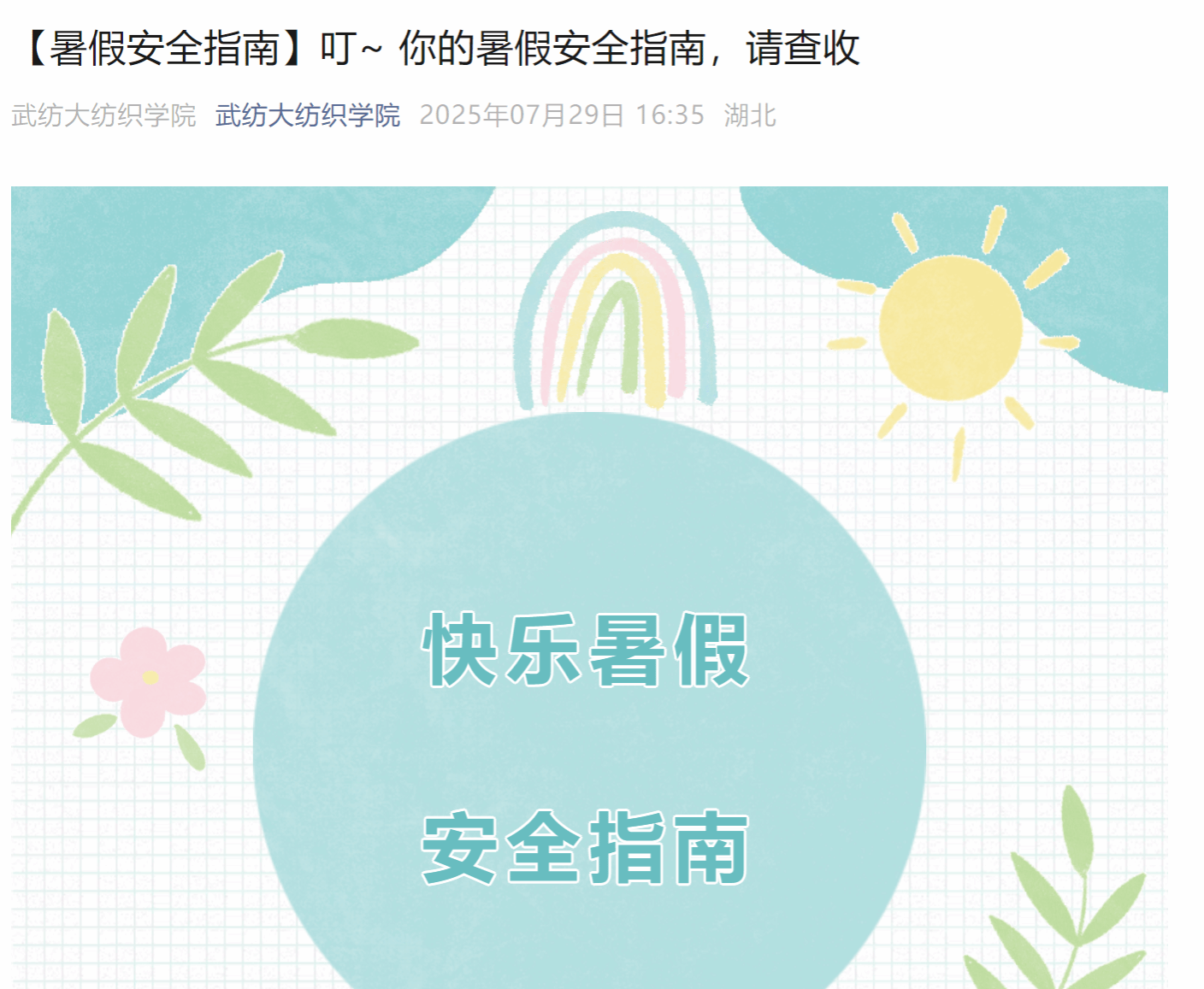 通过微信公众号推送了精心编制的《暑期安全指南》,进一步巩固安全教育成果,扩大教育覆盖面。