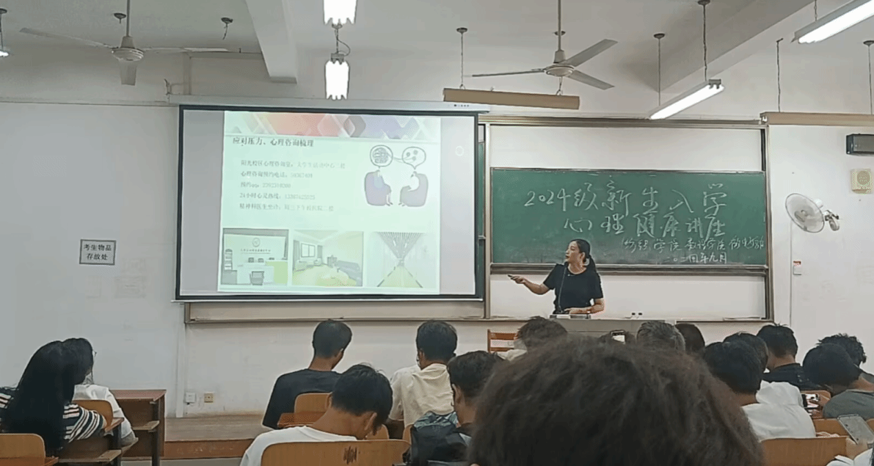 面向2024级全体新生举办心理健康教育讲座。本次讲座由心理健康中心的林凡老师主讲,主题为“拥抱变化,积极行动——大学新生入学适应”。