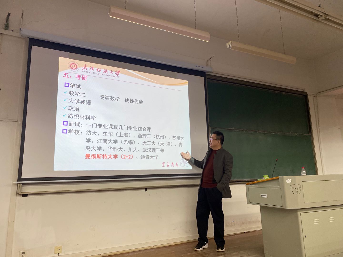 于11月9日下午在崇志楼T102教室开展纺织类专业认识的讲座。本次讲座由陈海主持,武继松主讲。