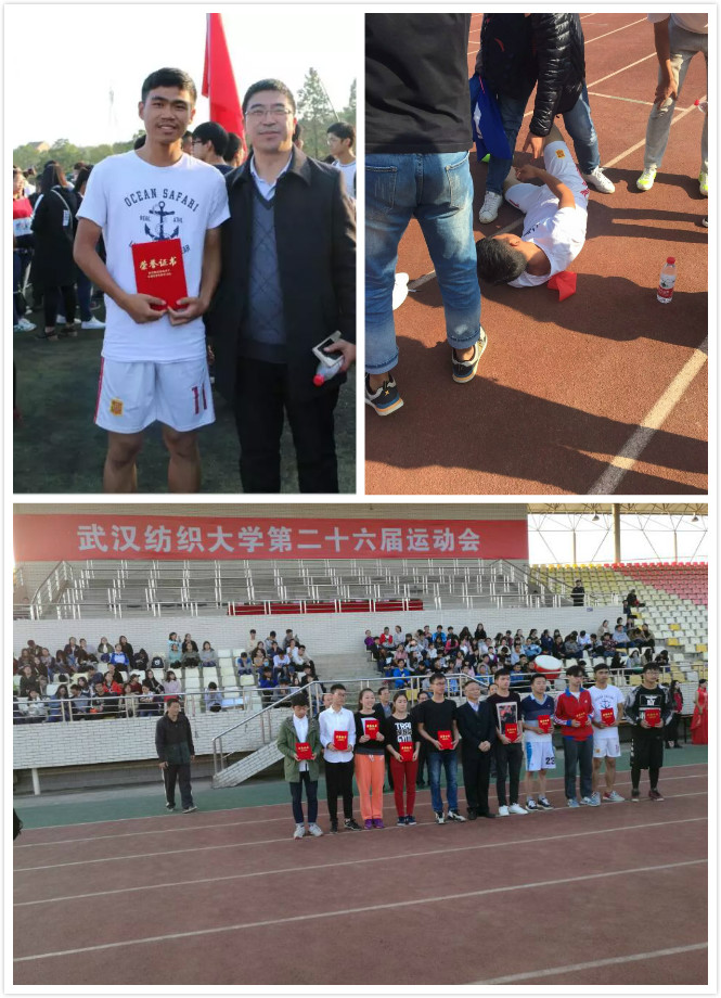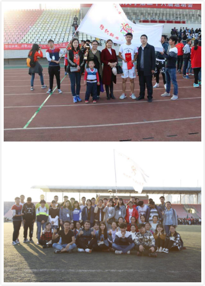 获得教工组“体育道德风尚奖”荣誉称号;我院张明老师获教工组铅球第一名,郭洪涛同学获男子100m、200m、4*100m接力三项第一,龙浩帆同学获跳远第一名,由我院肖娟老师与新生为主组成的师生14人组获女子60m接力第一名。