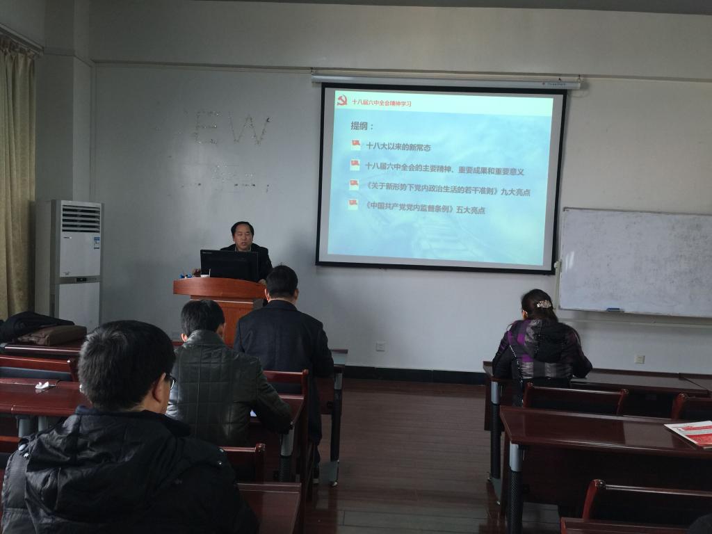 为了贯彻落实、深入学习党的十八届六中全会的重大意义、精神实质和战略部署,根据中央和省委有关要求,按照学校党委统一部署,12月15日,校党委委员、研究生处处长李相朋来到免费足球直播