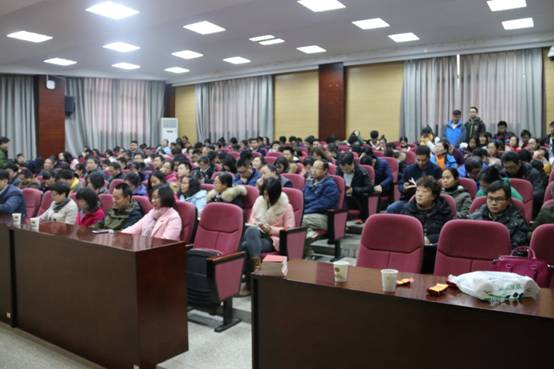 全体教职工在行政楼二楼学术报告厅,听校党委常委、副校长罗锦银关于十九大的辅导报告, 罗锦银为大家作了题为“高举习近平新时代中国特色社会主义思想伟大旗帜--让党的十九大精神在学校落地生根”的辅导报告。