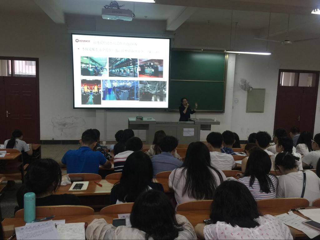 王宗文女士1993年从我校毕业之后就进入广东前进牛仔公司,从基层一线做起直至今日。王女士用自己二十多年来的前身经历来讲解,我们应该如何去选择未来,如何去选择平台。告诫我们要干一行爱一行,要对事情保持专注,不要三心二意,要坚持纺织行业,从基层做起,其中大有作为。王宗文女士十分风趣幽默,不时博得同学们的掌声和笑声。