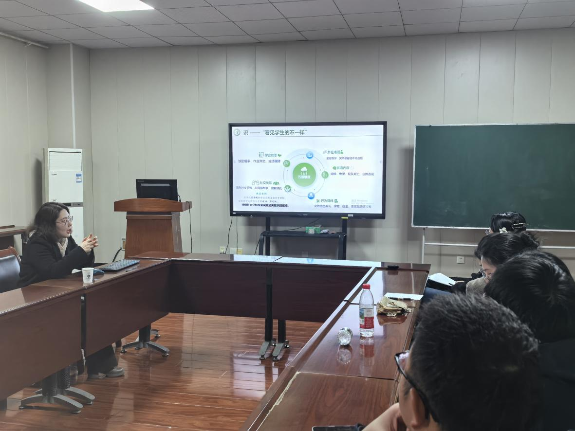 举办班主任沙龙暨心理健康专题培训。校心理健康教育中心主任江秋玮副教授受邀作《看见,才有可能改变——班主任心理危机识别与应对技巧》专题讲座,院党委书记周洋、副书记赵亮、本科生班主任、研究生德育导师参加培训。