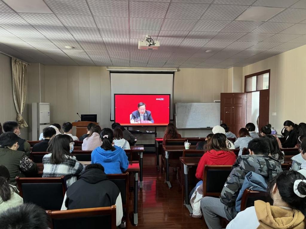 组织教师与优秀本科生、研究生代表于8H-502教室集中收看直播,深入学习体会中国共产党第十九届中央委员会第六次全体会议精神。