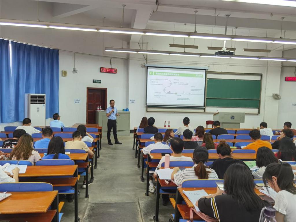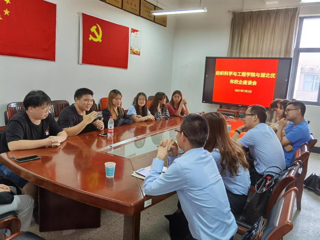 2021年7月2日,湖北优布非织造有限公司 张维总经理至免费足球直播-足球直播在线观看 开展“纺粘长丝针刺非织造胎基布的发展概况”的主体讲座。讲座内容就纺粘长丝针刺非织造生产线的设计、针刺非织造胎基布的后整理、非织造胎基布的应用及优布公司发展历程四大部分展开。讲座后,张总携带公司团队人员与非织及纺织专业学生就工作规划、职业发展等方面开展了座谈讨论。