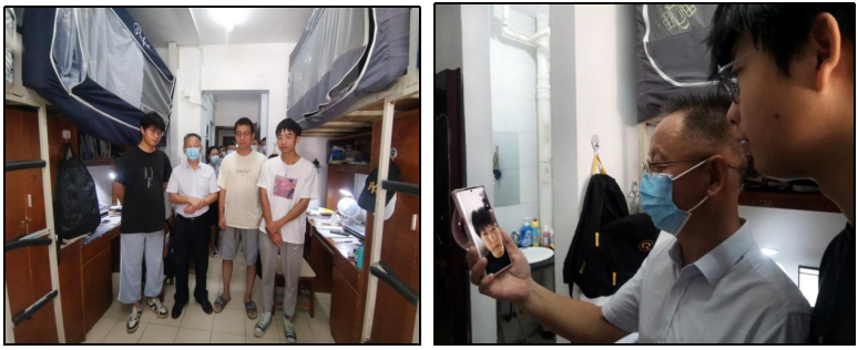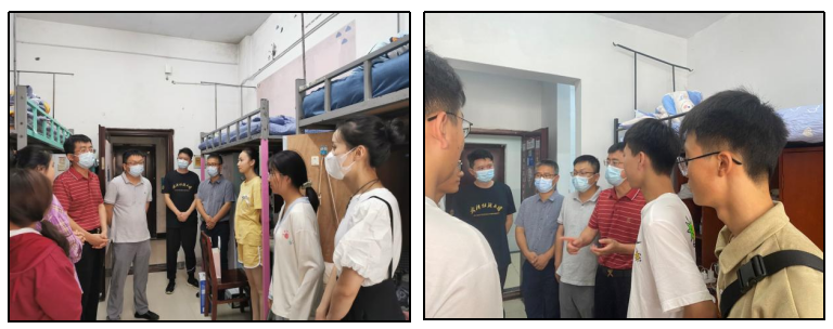 余家友书记、蔡光明院长等班子成员一行五人在迎新之际,走进学生寝室,来到学生身边,看望慰问并关心了解学生学校适应情况,一一解决学习生活上的困难。余家友寄语新生,希望他们学会接纳与喜欢,勇于创新与创造,做到脚踏实地、仰望星空,共同创造和谱写人生的华丽篇章。蔡光明悉心询问新生对专业的认知和对未来的规划,希望他们能肩负祖国发展重任,在这个让信念点燃的地方逐梦远航。