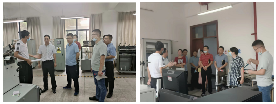 王处长一行首先参观了我院纺织材料性能表征实验室、纺纱实验室、非织造实验室等教学实验室,实验室主任陈军老师为各位领导详细介绍了各实验室的基本情况、实践教学运行状况、实验室设备使用等基本情况。