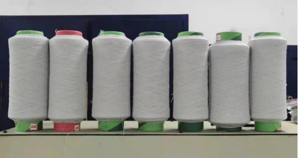 在此,特别感谢际华三五四二纺织有限公司、湖北汇尔杰新材料有限公司、际华三五零二职业装有限公司的大力支持。目前,采用本文的纺纱技术,课题组与汇尔杰新材料有限公司等联合,批量生产了以玄武岩纤维为核、阻燃纤维为壳的防火纱(图3),开发了皮肤友好型防火织物(图4)。