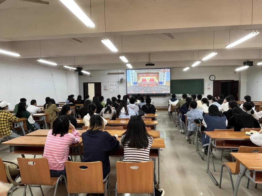 主会场、研究生分会场、本科生分会场等3个会场同步集中观看大会盛况,并于16日下午召开全院主题班会,认真聆听、学习、热议党的二十大工作报告。