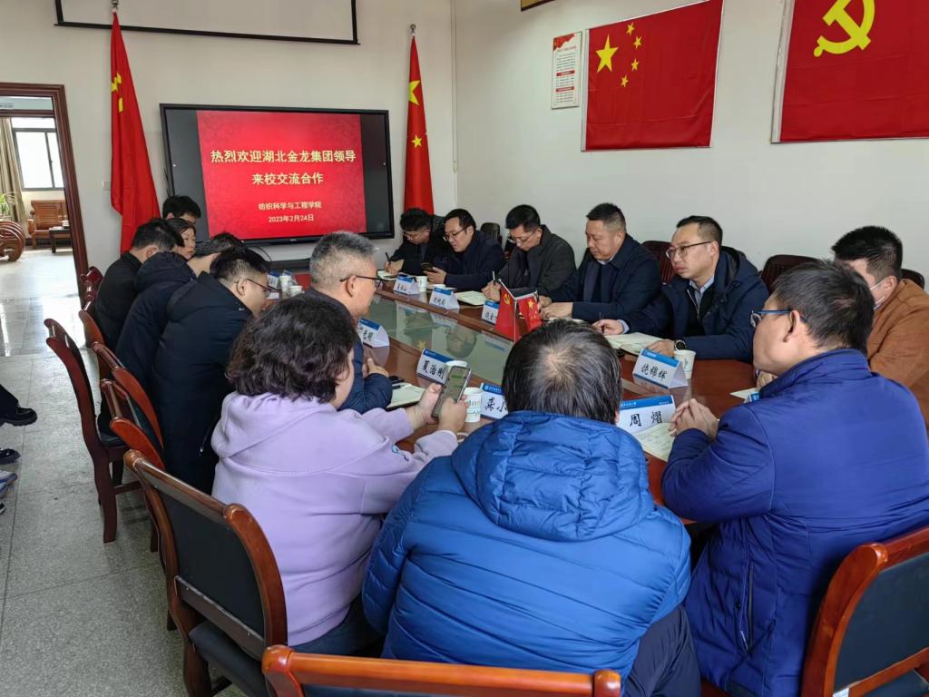 发展历史、专业特色、人才培养、校企合作等情况做了介绍。他表示,湖北金龙集团是一个创新性强、产业化的集团,在行业内具有鲜明的特色优势和地位,希望未来在人才培养、新领域拓展等方面能够有更深度的合作。