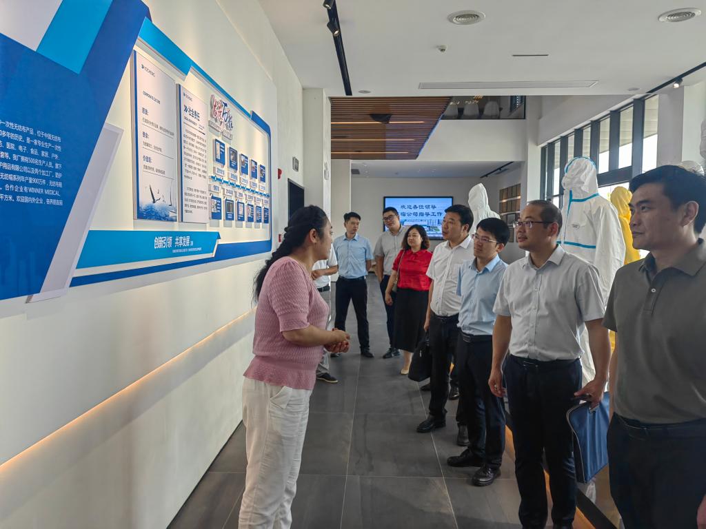 朱张军一行实地参观考察了北拓盈材料有限公司、了解非织造布技术创新中心建设情况;参观走访了仙桃市誉诚无纺布制品有限公司,实地考察了医用防护品流水线工作,了解企业在疫情防控期间作出的积极贡献。