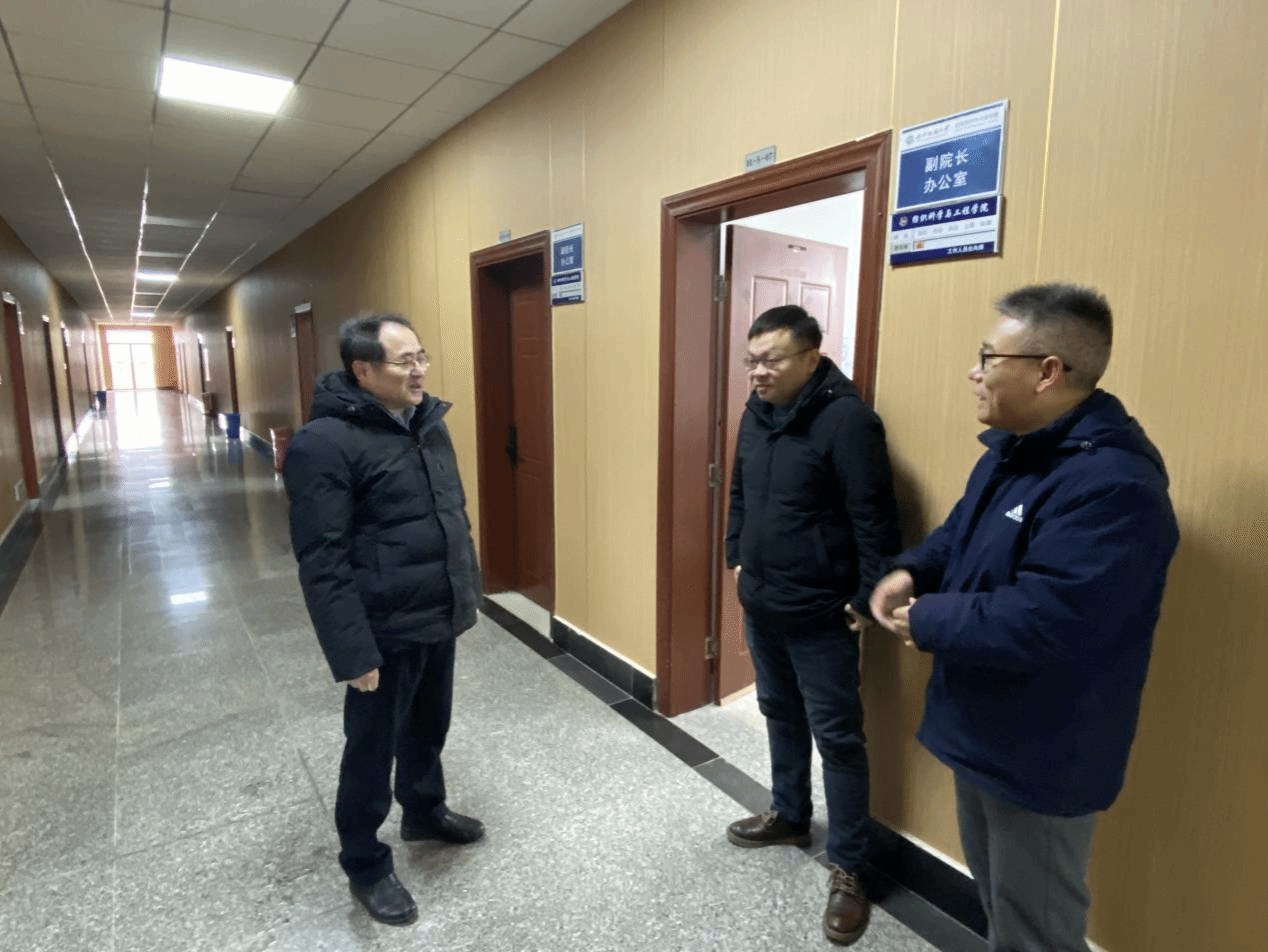 ,检查寒假前相关工作安排情况,调研指导申博、安全稳定等工作,走访看望慰问寒假坚守工作岗位的教师以及留校学习科研的学生。学校办公室负责人陪同走访。