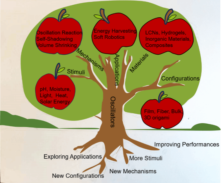 本文总结了自振荡致动器的驱动机理,并详细描述在不同光源刺激下的振荡机制。自振荡致动器在材料种类、刺激类型、尺寸和应用方面的研究进展。尽管自振荡执行器取得了重大进展,但实际应用仍具有挑战性。
