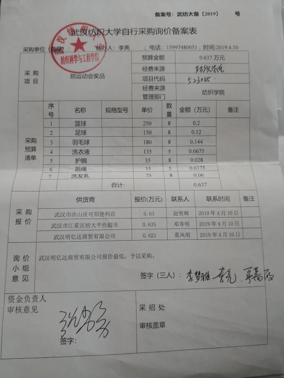 武汉纺织大学自行采购情况公示(20190422-20190429)
