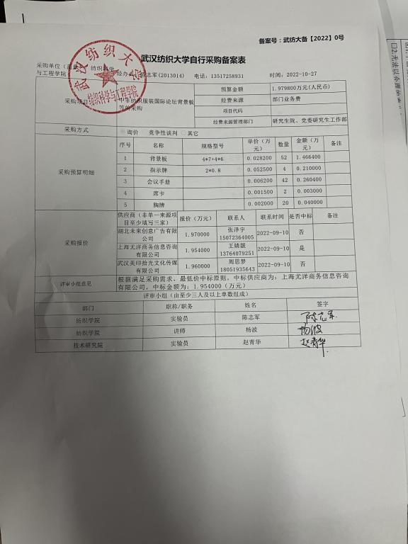关于中非纺织服装国际论坛背景板等的采购的公示