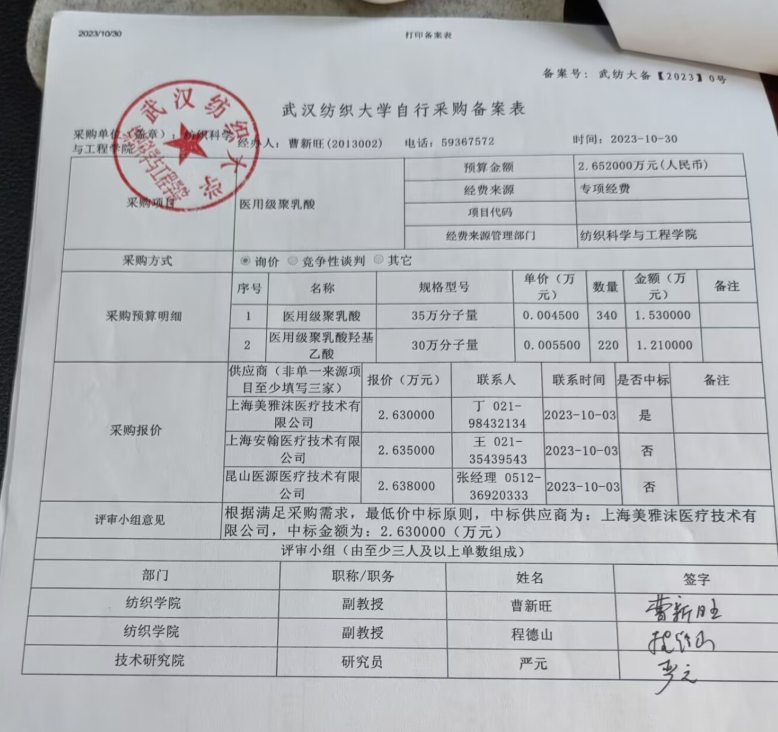 关于聚乳酸采购询价的公示