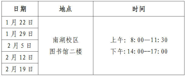 南湖校区图书馆寒假开放安排如下: