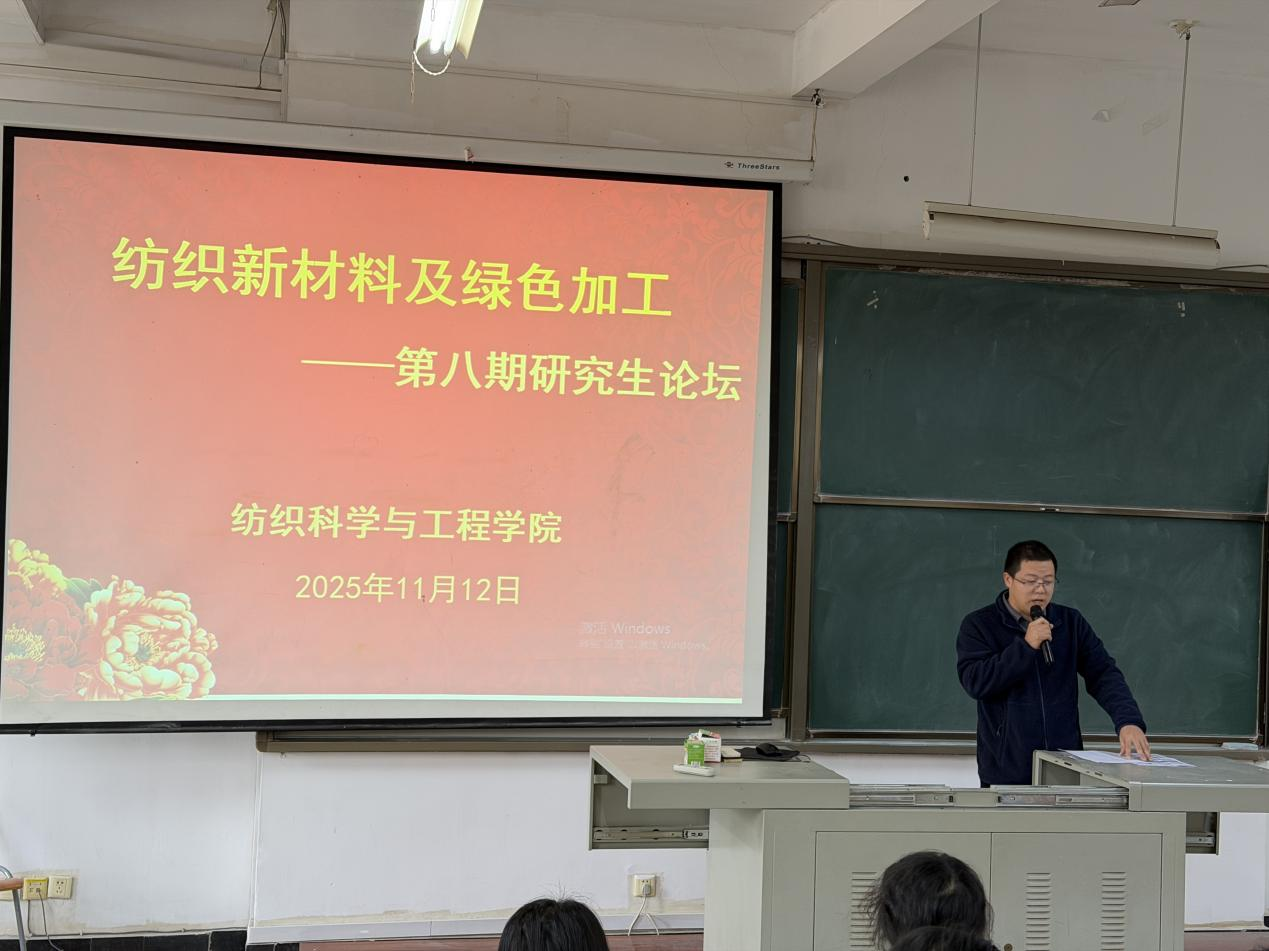 首先,罗祖维老师介绍了举办研究生论坛的主旨和意义,同时宣布第“纺织新材料及绿色加工”研究生论坛正式开始。