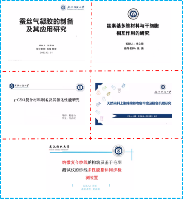 论坛上,孙思捷、杨文靖、闫昌旺、蒋慧、齐硕五位同学分别介绍了自己的研究课题和目前取得的研究进展,并分享了自己的科研经验。主讲同学的研究课题涵盖了丝素基纤维、复合材料、纯棉织物、复合纱线等领域,契合了“纺织新材料及绿色加工”主题,代表了免费足球直播