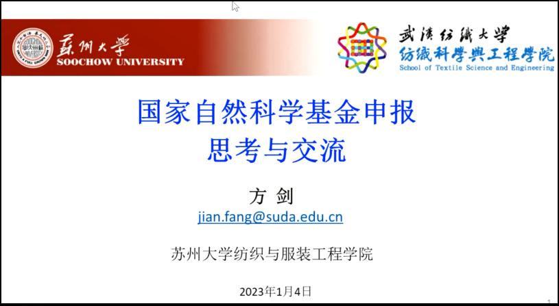 、际华-武纺功能材料与纺织新技术研发中心邀请苏州大学方剑教授,在1月4日下午以“国家自然科学基金申报思考与交流”为题进行了线上学术交流。院长蔡光明教授、免费足球直播