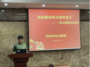 论坛上,王博博士介绍了举办研究生论坛的主旨和意义,同时宣布第九期“纺织新材料及绿色加工”研究生论坛开始。