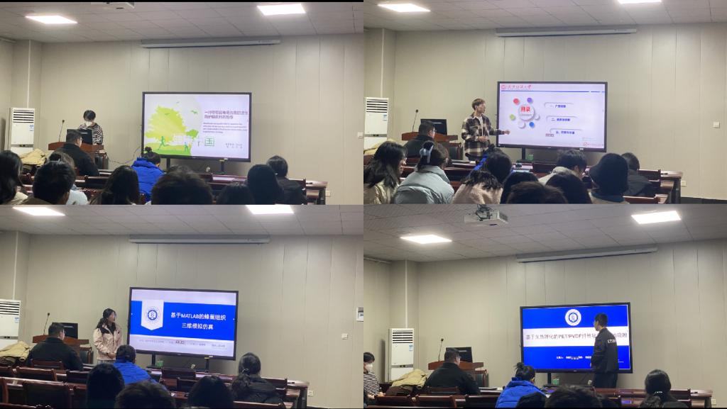 论坛上,王强、朱命伟、魏蒙嫄、高鑫羽四位同学依次介绍了自己的研究课题和目前取得的研究进展,并分享了自己的科研经验。主讲同学的研究课题涵盖了防护服面料、尼龙面料、蜂巢组织三维模拟仿真、PET/PVDF纤维毡等领域,契合了“纺织新材料及绿色加工”主题,代表了免费足球直播