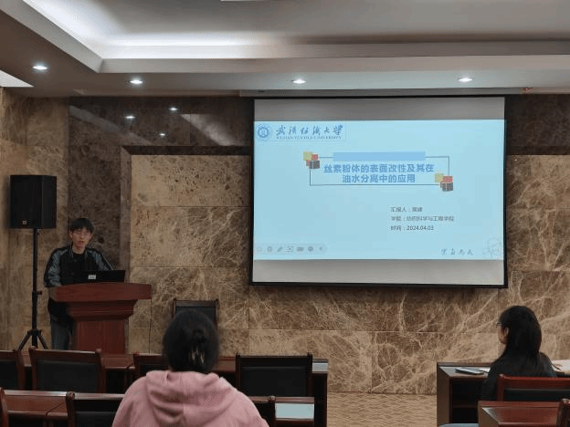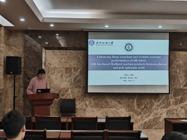 论坛上,力一颖、黄建、陈莹、邵晓宇、宋瑶和吴烨六位同学依次介绍了自己的研究课题和目前取得的研究进展,并分享了自己的科研经验。主讲同学的研究课题包括荧光碳量子点、丝素粉体、葡萄糖与聚谷氨酸生物基美拉德反应产物、纤维素/MOF复合纤维、玄武岩三维机织管状复合材料、免烫棉织物,契合了“纺织新材料及绿色加工”主题,代表了免费足球直播