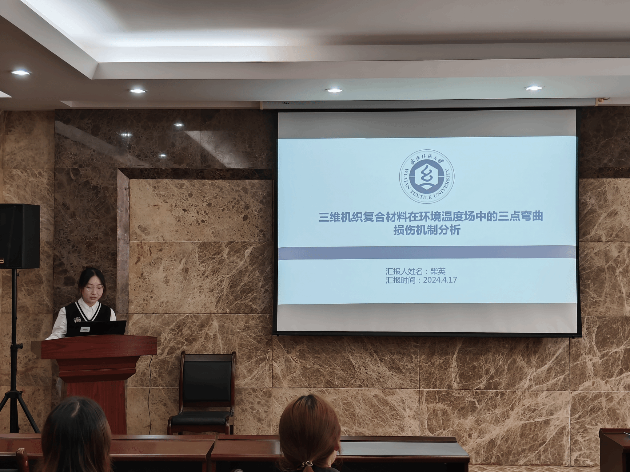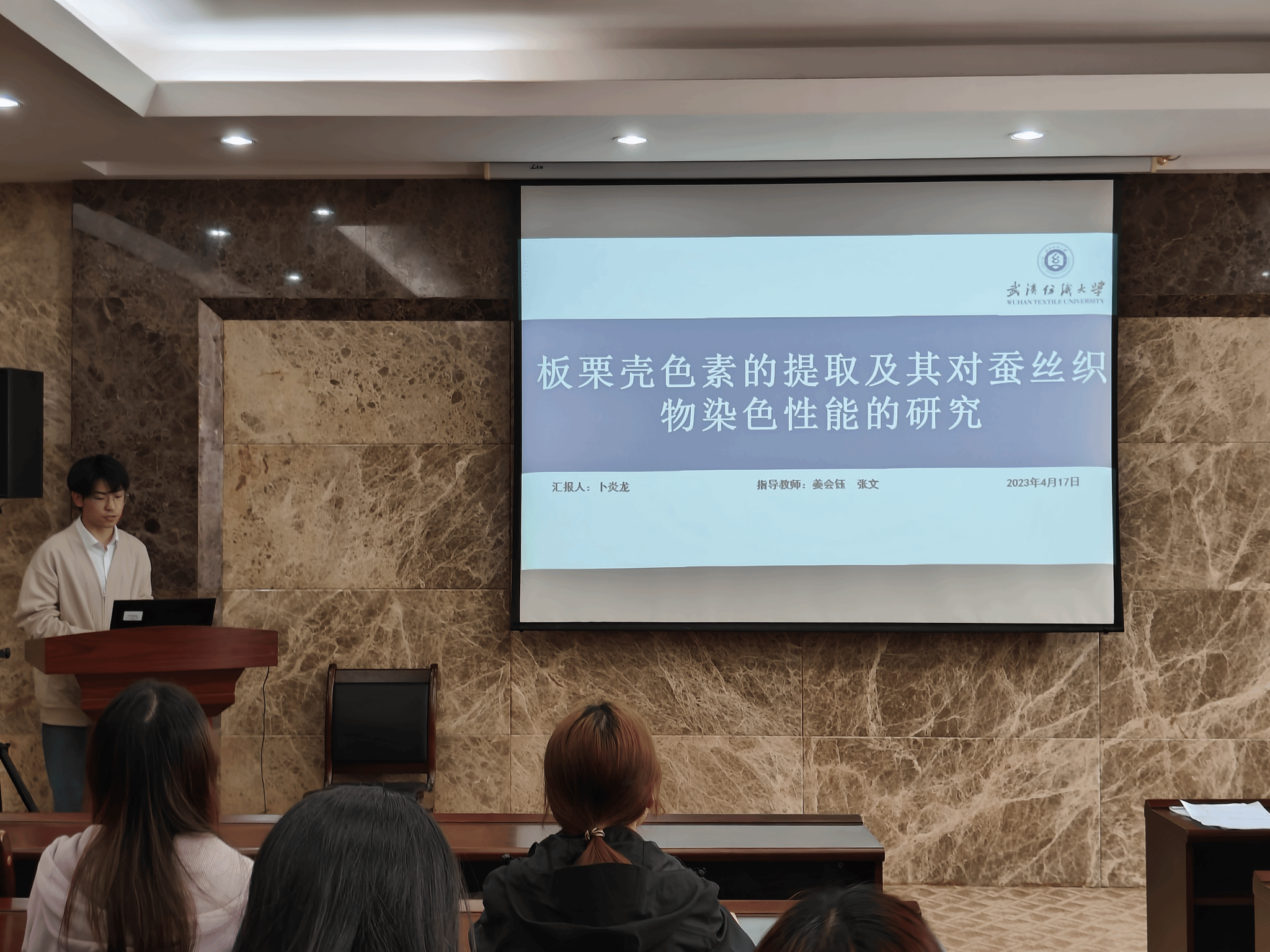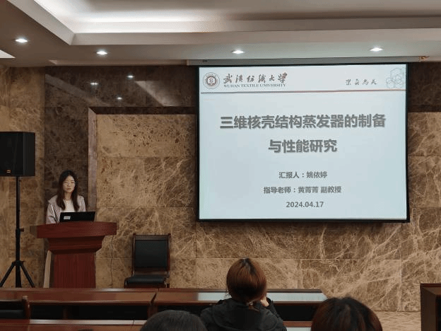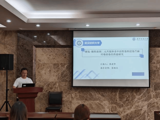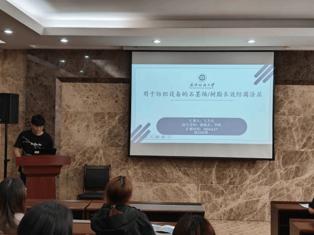 论坛上,王天杰、卜炎龙、柴英、孙静静、熊建华和姚依婷六位同学依次介绍了自己的研究课题和目前取得的研究进展,并分享了自己的科研经验。主讲同学的研究课题包括石墨烯/树脂、板栗壳色素、三维机织复合材料、丝素基神经导管、液氨-极性溶剂二元共混体系中活性染料、三维核壳结构蒸发器,契合了“纺织新材料及绿色加工”主题,代表了免费足球直播