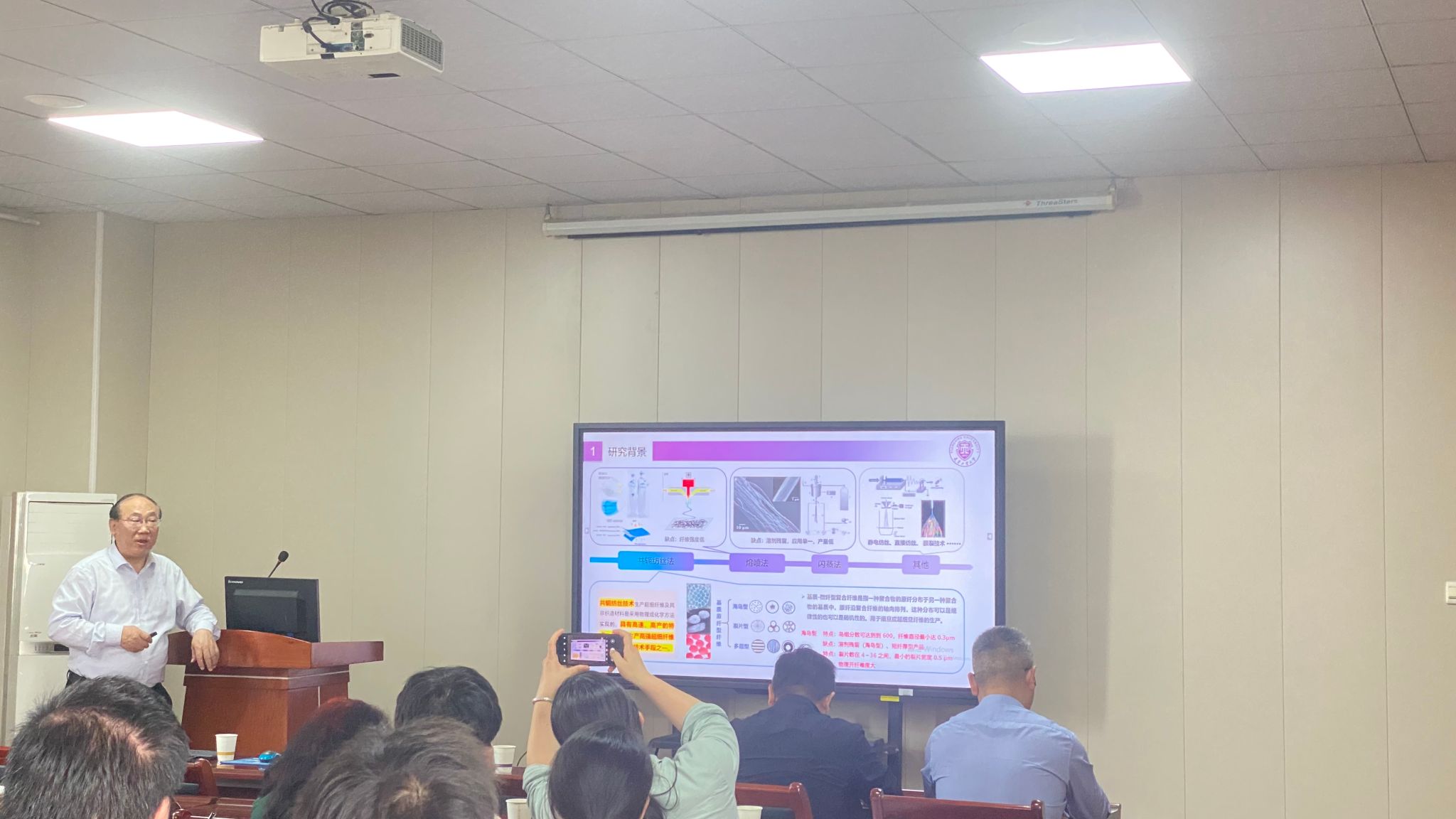 蔡光明教授首先介绍了钱教授的科研、工作经历,并对钱教授的出席表示了热烈欢迎。讲座中,钱教授以“熔融双组份超细纤维成纤技术及应用研究进展”为题介绍了该课题的研究背景,并分享了其在开纤技术、高低温水溶开纤的海岛纤维的规模化制备、TPVA水溶开纤复合纤维性能、裂离纤维物理开纤技术、纺丝技术、水性超纤革绿色制备技术等方面的研究进展。钱教授和参会的师生进行了热烈的交流,为师生们答疑解惑。参会教生表示讲座内容干货满满、收获满满。最后,参会师生对钱教授表示了诚挚感谢。