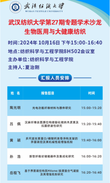 承办的武汉纺织大学2024年第27期专题学术沙龙在免费足球直播
