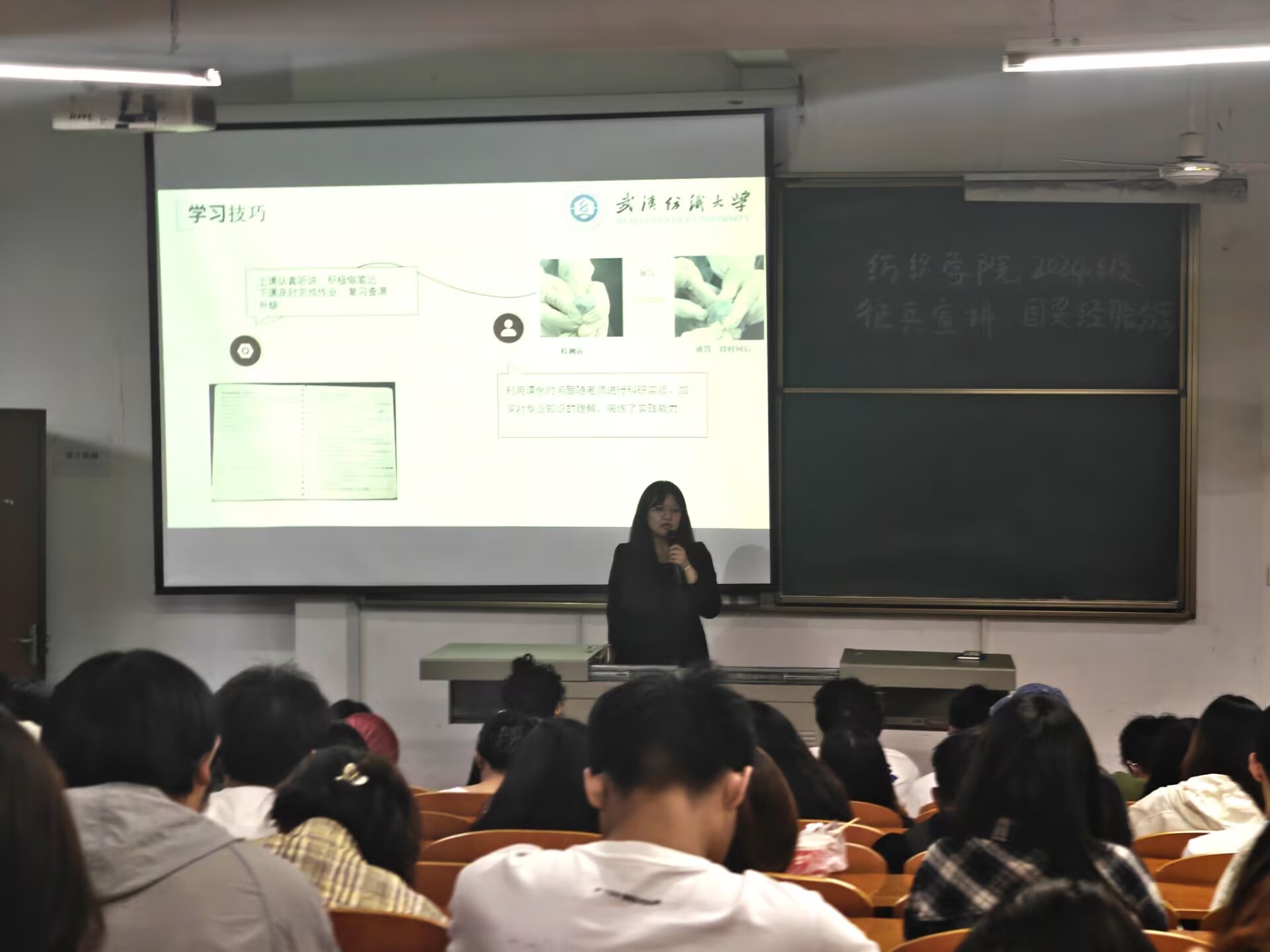 卓越之路,共勉前行。纺织12302班国奖获得者周怡心从学习方法、时间管理、社会实践、学科竞赛等方面进行分享。她强调,大学学习要注重课堂效率,做好预习和复习,同时积极参与学科竞赛和科研项目,在实践中提升专业能力。此外,她还分享了平衡学习与课外活动的经验,鼓励同学们寻找合适的实验室进行科研实验。周怡心的经验分享干货满满,为同学们提供了宝贵的借鉴,赢得了阵阵掌声。