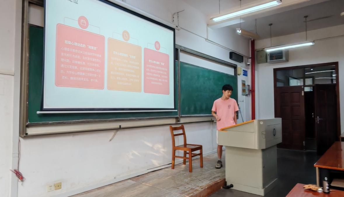陈宇轩同学首先介绍了心理委员在班级中的重要作用。他强调,心理委员不仅是班级心理动态的观察员,需要密切关注同学们的情绪变化和行为表现,及时发现潜在心理问题;同时也是同学们心理健康的支持者,要为大家提供安全、温暖的倾诉环境;更是师生心理沟通的桥梁,要及时反馈同学们的心理需求。
