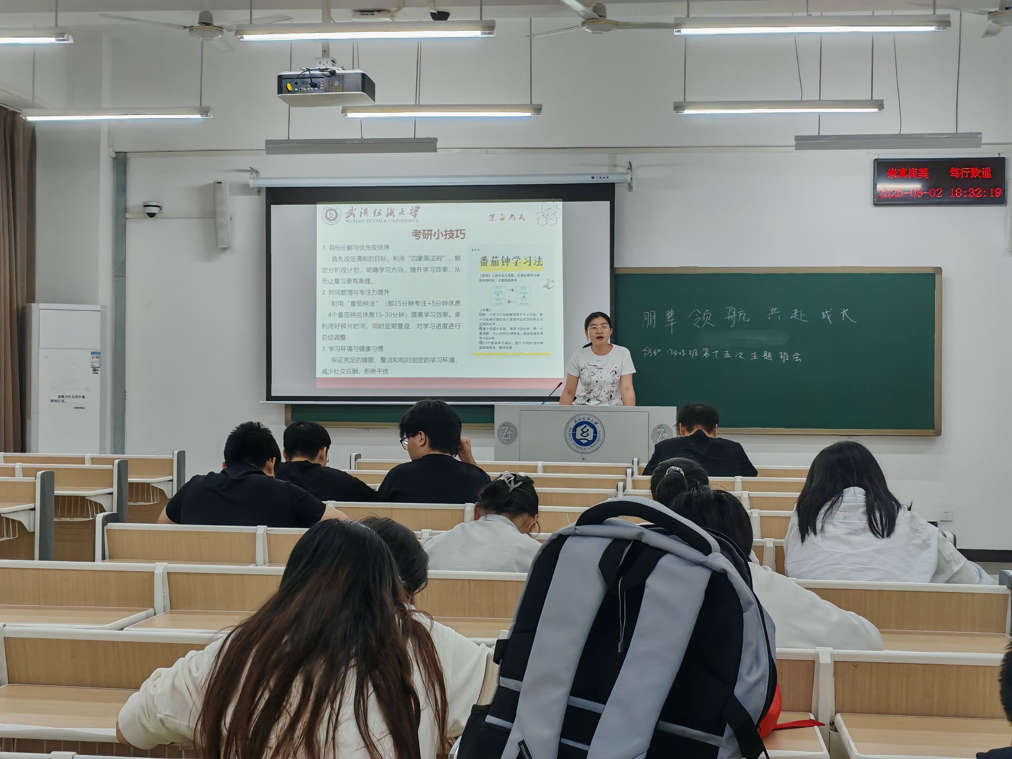 分享会上,轻化12102张英姿为大三学生分享了自身大学期间参与社会实践、学术科研的经历,并结合自身备考经历,从院校选择、复习规划、心态调整、复试技巧等方面展开讲解。她鼓励大家要珍惜在校生活的学习时光,趁早明确目标、做好规划,努力拼搏,成为自己想成为的人。