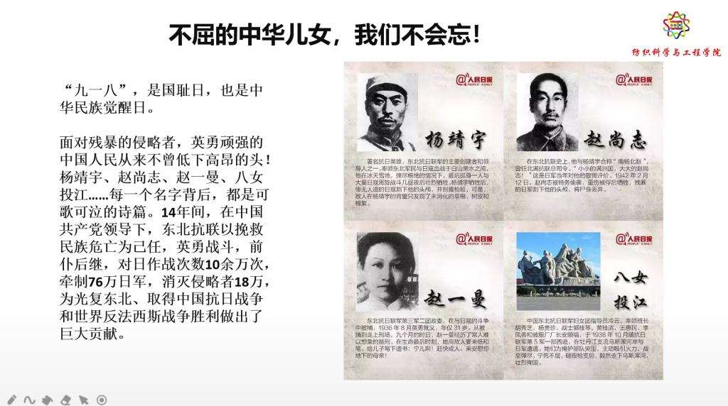学生干部代表围绕“铭记历史 勿忘国耻 牢记使命 振兴中华”的主题,于9月18日晚,在线上开展了纪念“九一八”爱国主义主题教育活动。活动由学生会办公室主任詹克静主持,院团委书记、辅导员李亮老师参加。
