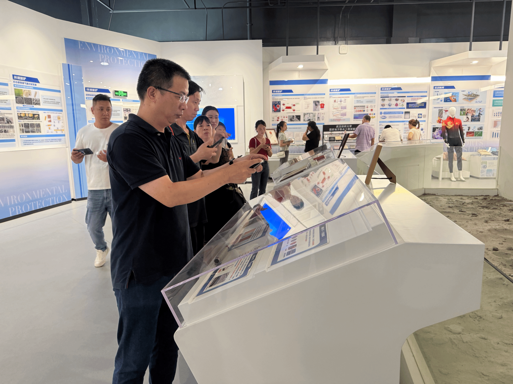 在纺织科技馆内,新生和家长们跟随专业讲解员的引导,依次参观了纺织缘、传统纺织、现代纺织、大纺织、超纺织和未来纺织等展区。纳米纤维制备演示、智能可穿戴服装体验、航空航天纺织复合材料展示、生物医用纺织品应用等环节,引得大家频频驻足,不少家长感叹“纺织科技的应用远超想象”。
