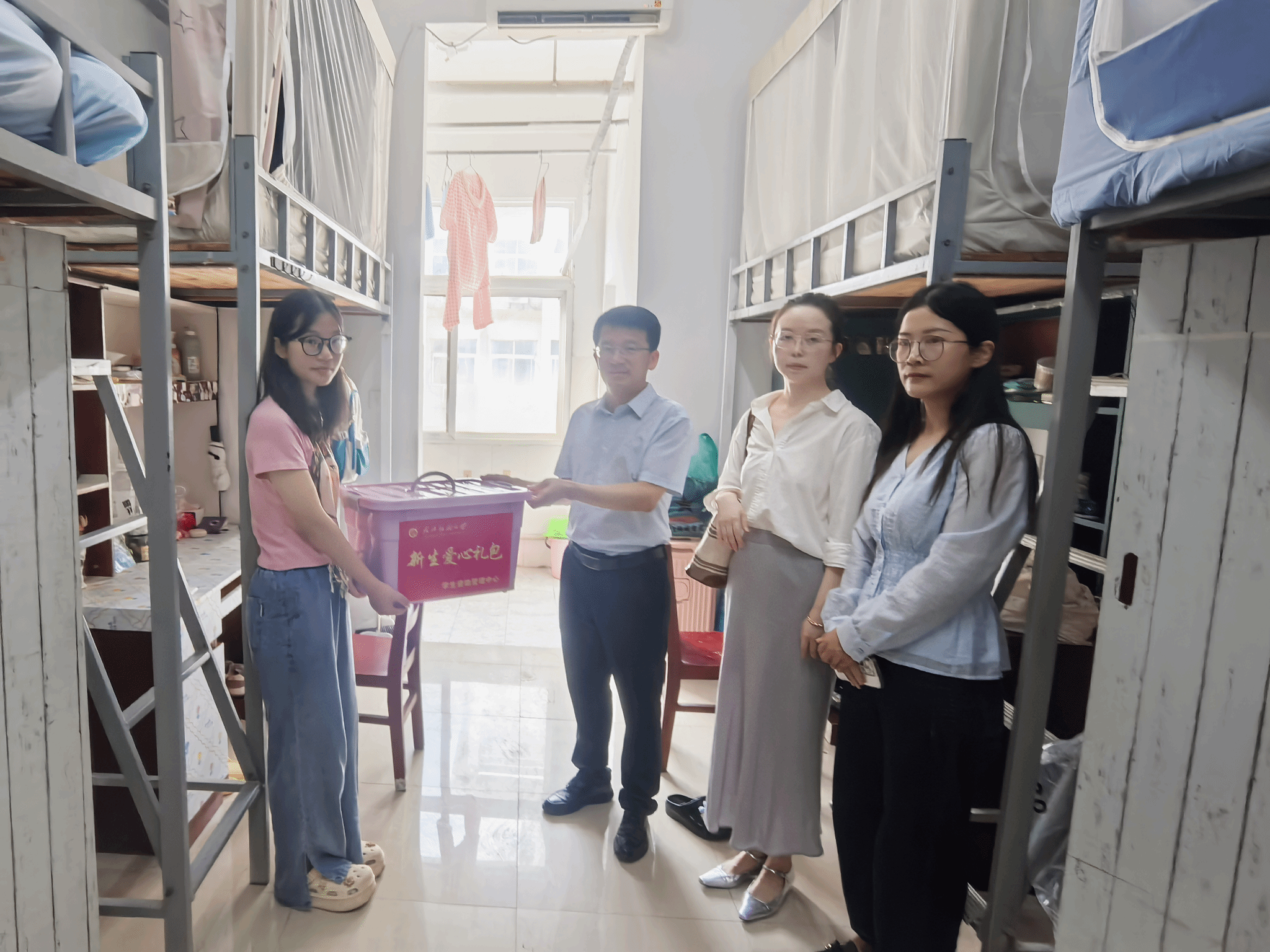 免费足球直播 领导班子深入迎新一线,亲切慰问工作人员和志愿者,与新生、家长面对面交流。院领导还走访新生宿舍,为家庭经济困难学生送上“暖心礼包”,细致询问入住适应情况,传递免费足球直播 的关怀与温暖。