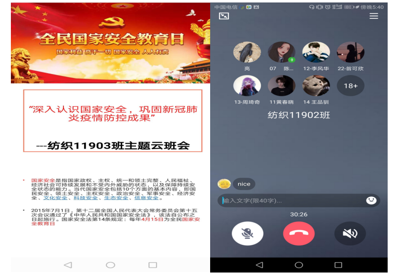 一场班会,一场讨论,让大家更加深刻认识中国,热爱中国,一次疫情,对内,突破了国内一些人的长期崇洋媚外,还原了一个真实的,没有皇帝新装的西方,对外,也意味着中国视角和中国标准迅速走向世界,中国必将影响整个世界。本次的国防主题班会,从当前疫情防控的实际情况出发,以总体国家安全观为指导,牢牢跟随国家舆论导向,提高了全院师生的国家安全法制意识,营造了维护国家安全的浓厚法治氛围,取得了圆满成功。