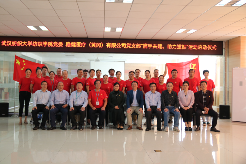 党委副书记陈海,教授李建强,非织造系主任张明,黄冈高新区党工委副书记、管委会副主任柯伟超,黄冈稳健工业园总经理钱幸福,北区总经理张秀山,南区常务副总经理李学宏及公司相关高层领导、党员代表参加本次活动,启动仪式由公司支部书记周国安主持。