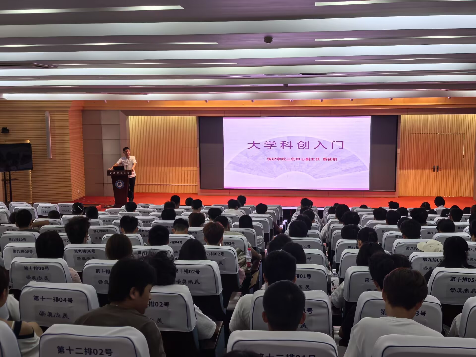 科创工作体系,并阐述了纺织学子在数字时代的应为与可为。结合具体“挑战杯”、“互联网+”等竞赛的经验,他从信息获取、实验入门、赛事筹备、导师选择等多个方面展开分享,并鼓励大一新生在专注学业的同时,踊跃参与课外实践,实现学术交流、技能拓展与兴趣培养的全方面发展。