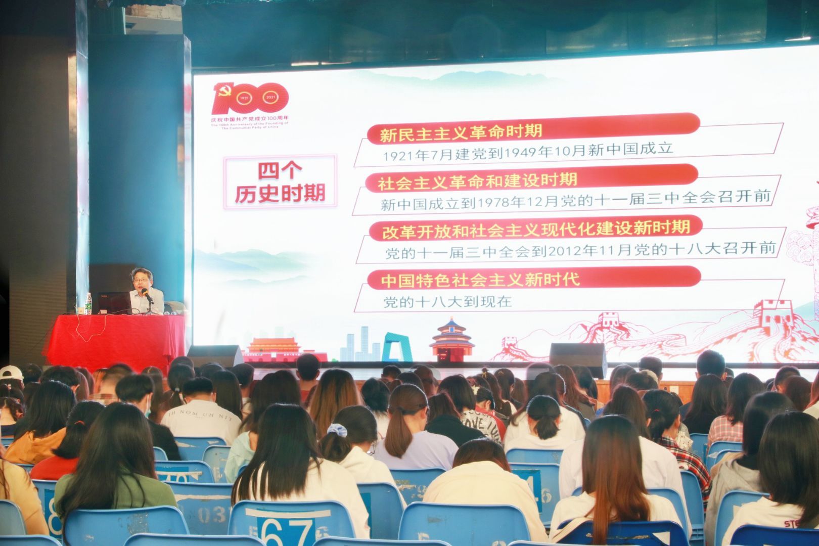 课上,唐敏副校长将中国共产党百年党史分成四个时期,总结出百年奋斗的三大历史飞跃和百年探索的五大理论成果。