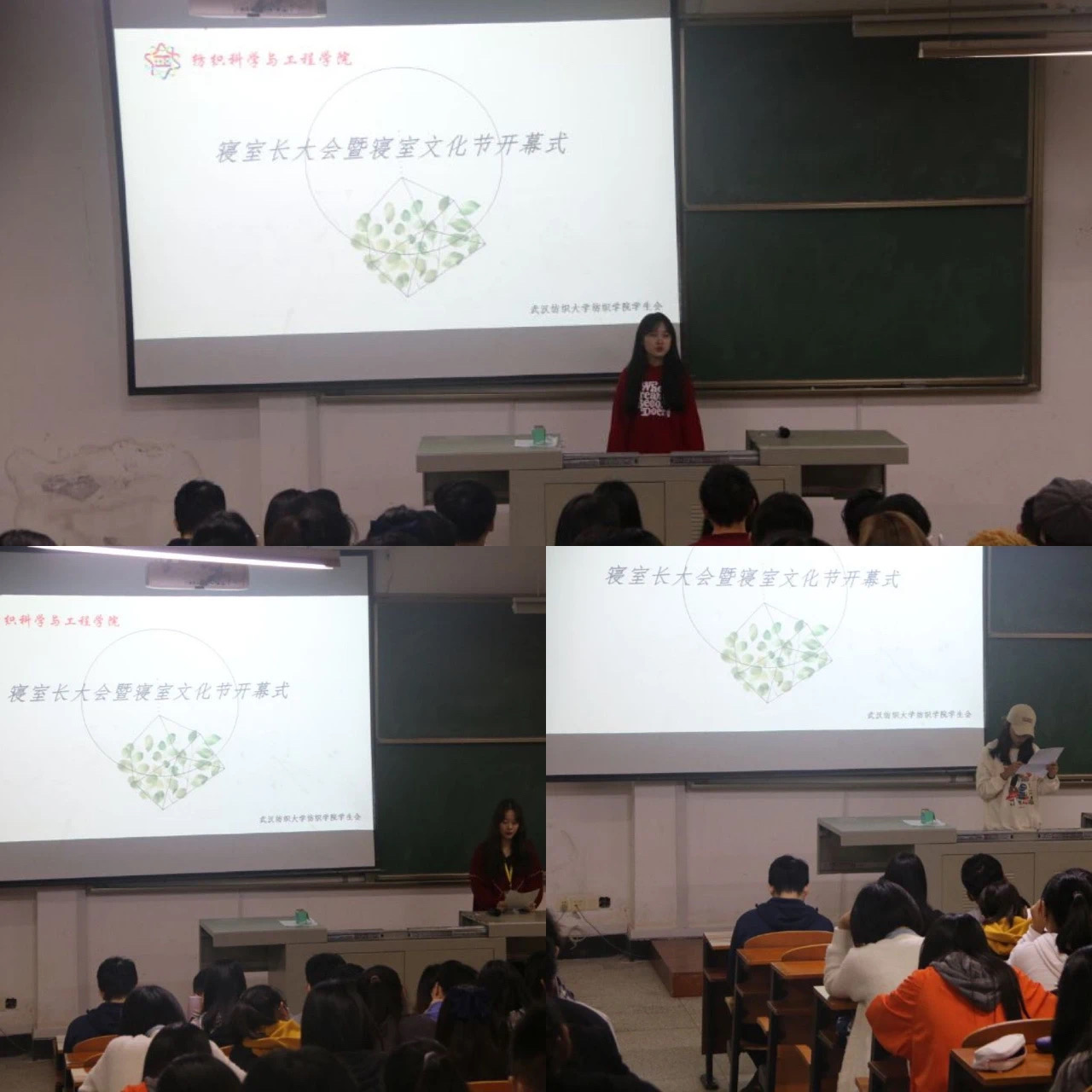 开幕式伊始,学生会副主席胡晓鼓励寝室长要从自身做起,助力寝室文化的发展与弘扬,并宣告文化节正式开幕。随后。陈海通过寝室建设对宿舍成员以后发展的良好影响引出寝室文化节的重要性,鼓励学生们要提高各寝室防范意识,保护寝室安全以及鼓励学生塑造宿舍的文化气息。接下来,宿管会会长刘祉萱介绍了宿管会的部门职责和日常工作,寝室长职责和院检校检的时间安排。宿管会程岚宣读安全文明宿舍管理条例。